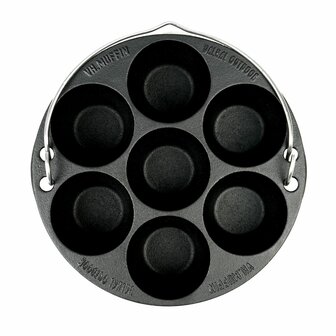 Geschikt voor 7 muffin/ cakejes, volledig gietijzer.