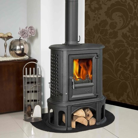 Door de grote deur kunt u de houtkachel met 30 cm lang hout vullen.