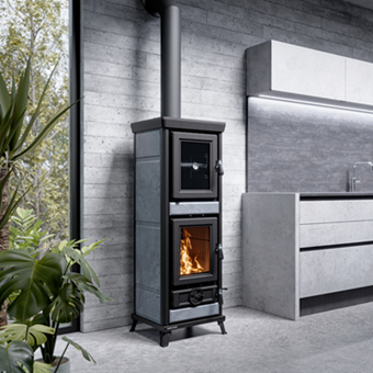 Deze elegante houtkachel combineert is beschikbaar in speksteen of keramiek. De Agnese Evo biedt een prachtig zicht op het vlammenspel en is uitgerust met een 26-liter geëmailleerde oven, perfect voor bakken en braden. De spekstenen of keramieken bekleding zorgt voor een natuurlijke warmteopslag en geleidelijke warmteafgifte, zelfs nadat het vuur is gedoofd. Kiest u voor keramiek, dan is er kueze uit de de kleuren bordeauxrood of wit, die beide een warme en moderne uitstraling aan je interieur geven.