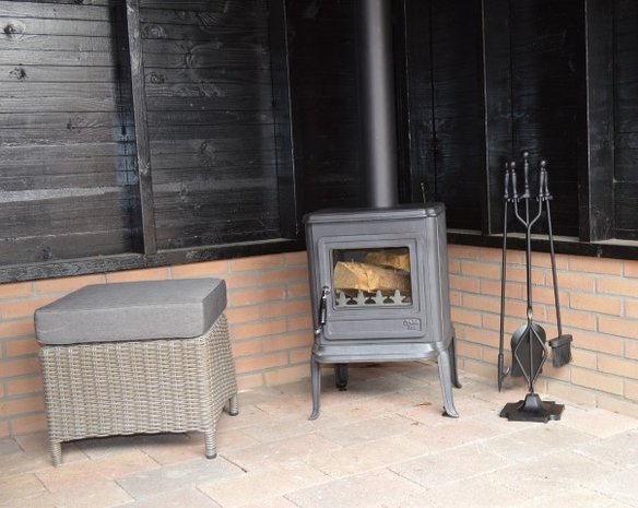 Deze gietijzeren houtkachel bij De Kachelerij, kunt u vullen met 28cm lang hout.