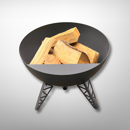 Deze unieke stalen vuurschaal kan op twee standen in elkaar worden gezet. Zodat de schaal wat schuin staat en er hierdoor goed zicht is op het vlammenspel. De vuurschaal staat op 3 poten die een modern patroon hebben.